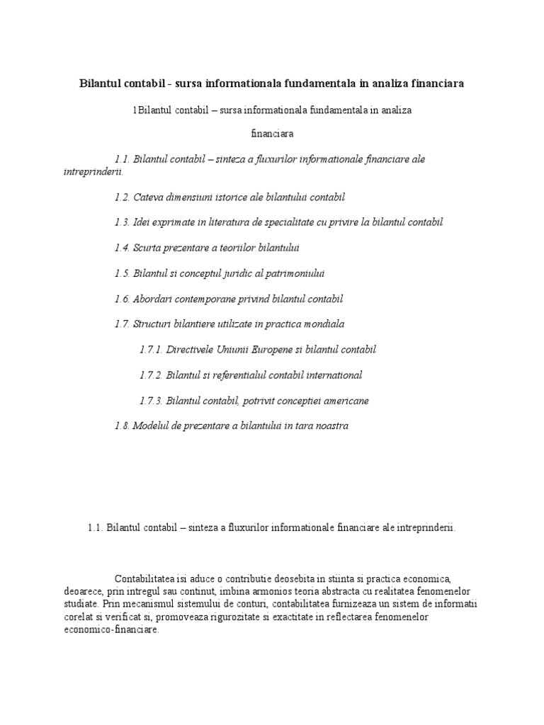 Licenta Bilantul Contabil Ca Baza Informationala De Analiza A Patrimoniului Si Performantelor Activitatii Unei Firme 321969 Graduo