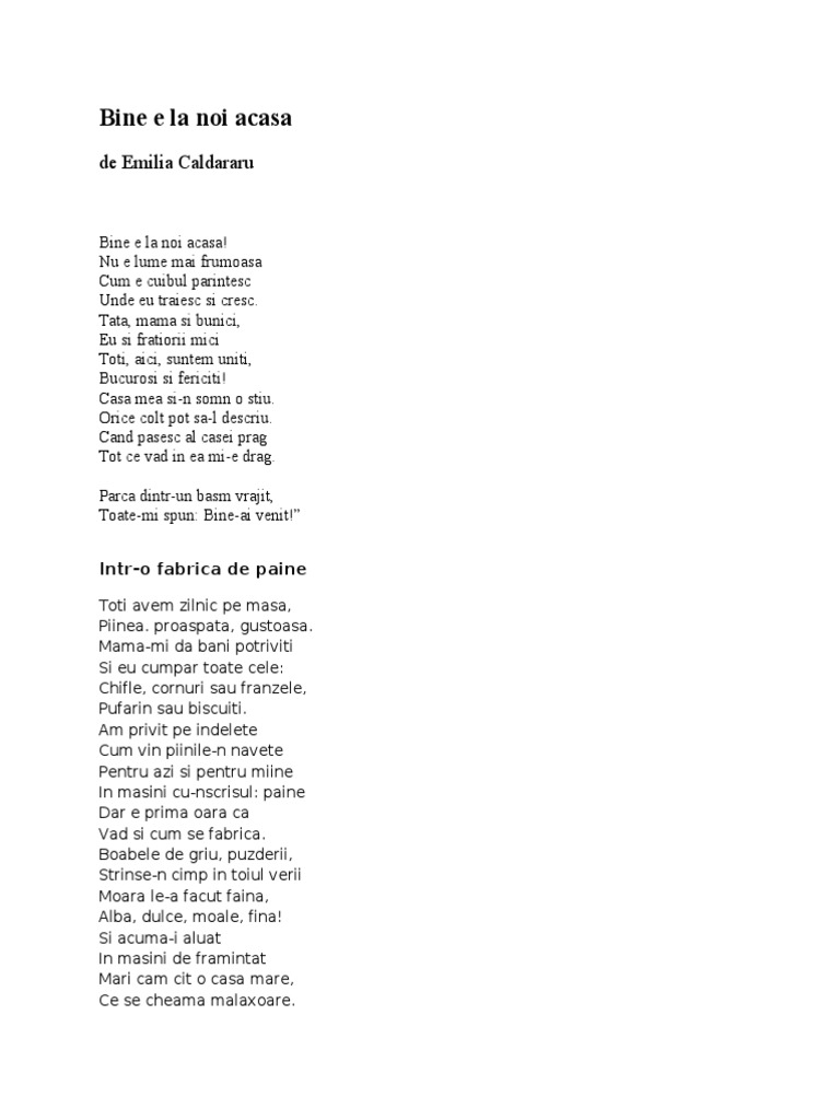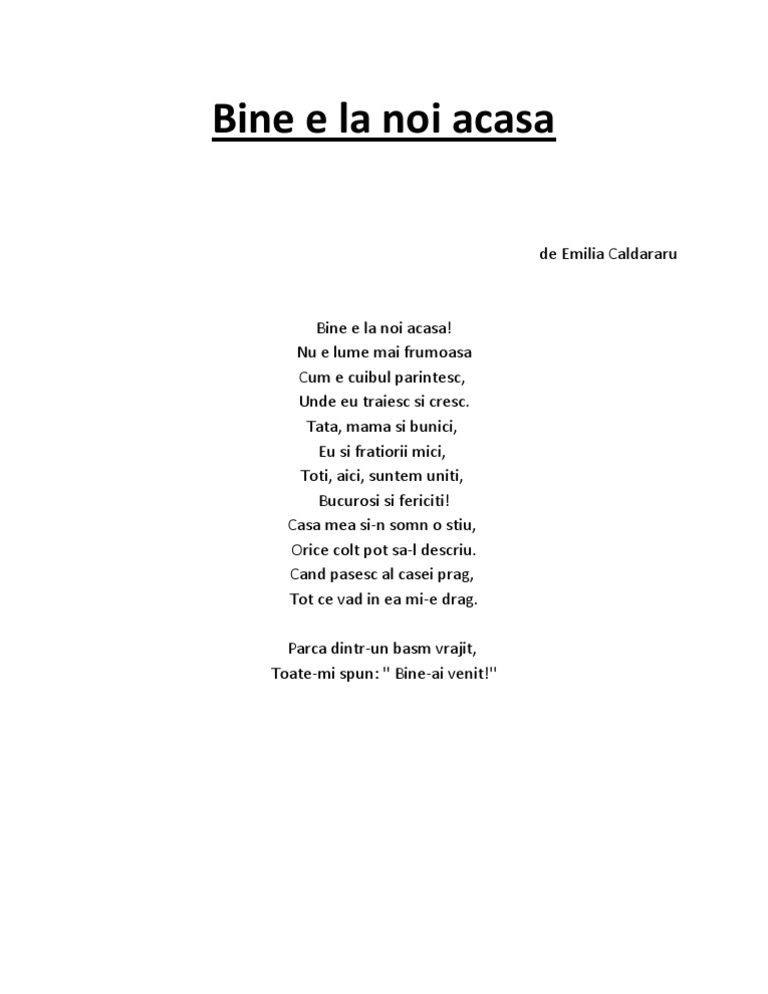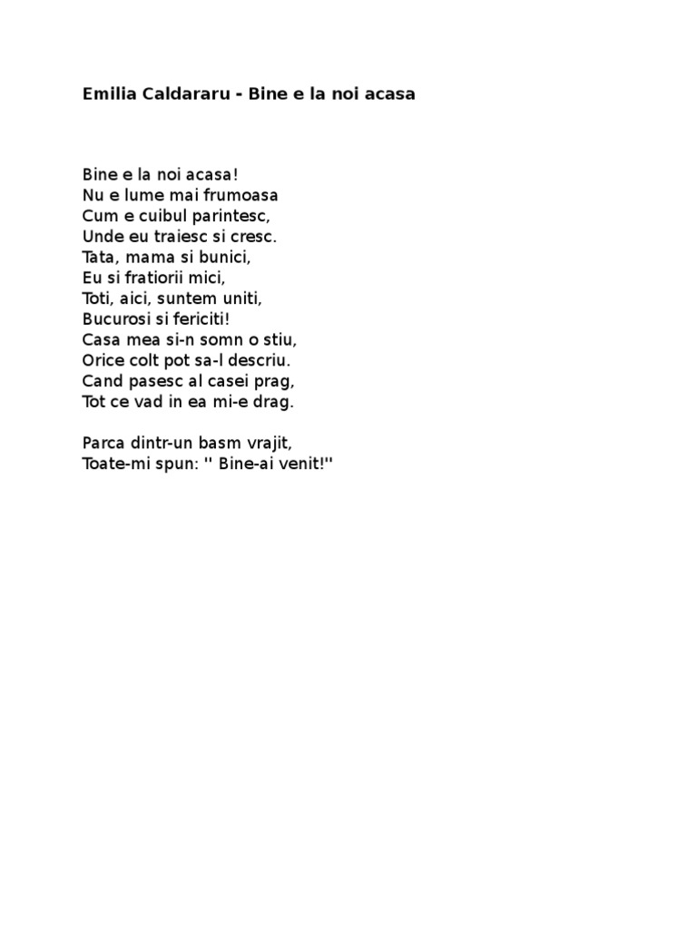 Cate Versuri Are Poezia Bine E La Noi Acasa De Emilia Caldararu Brainly Ro