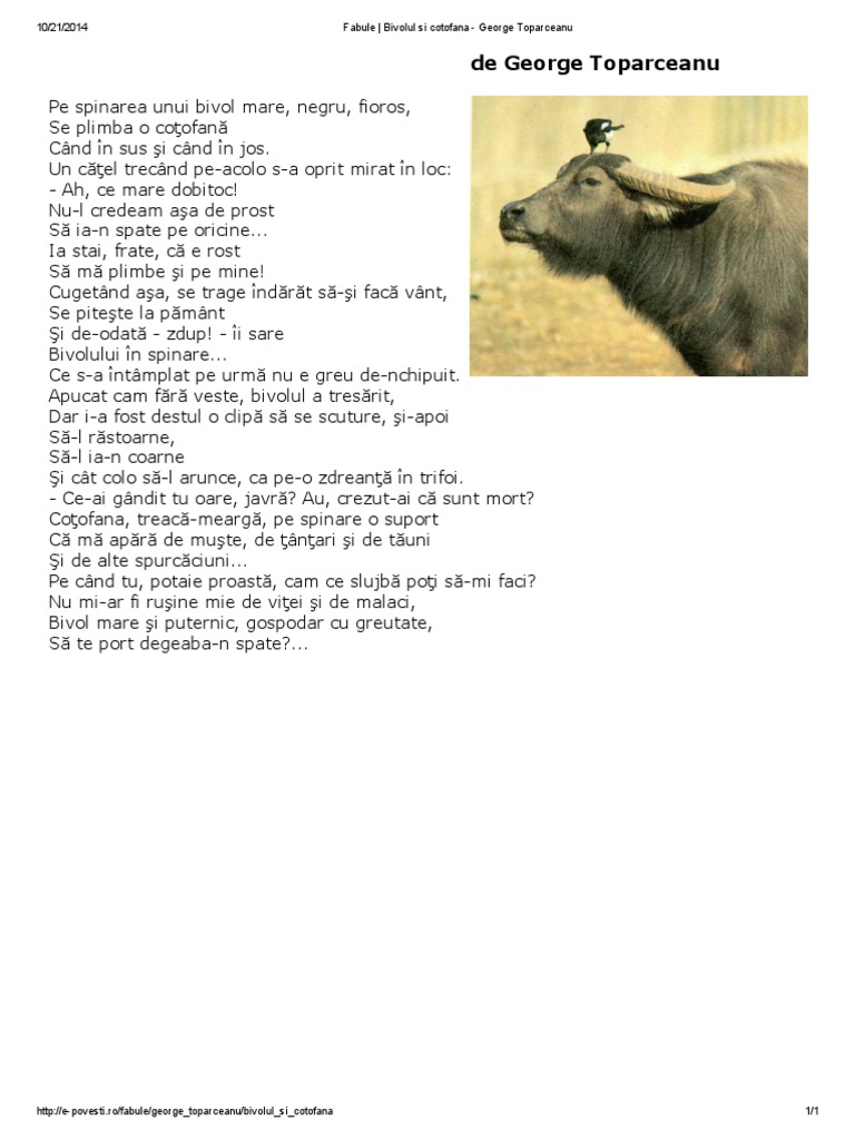 Referat Bivolul Si Cotofana De George Toparceanu 337995 Graduo